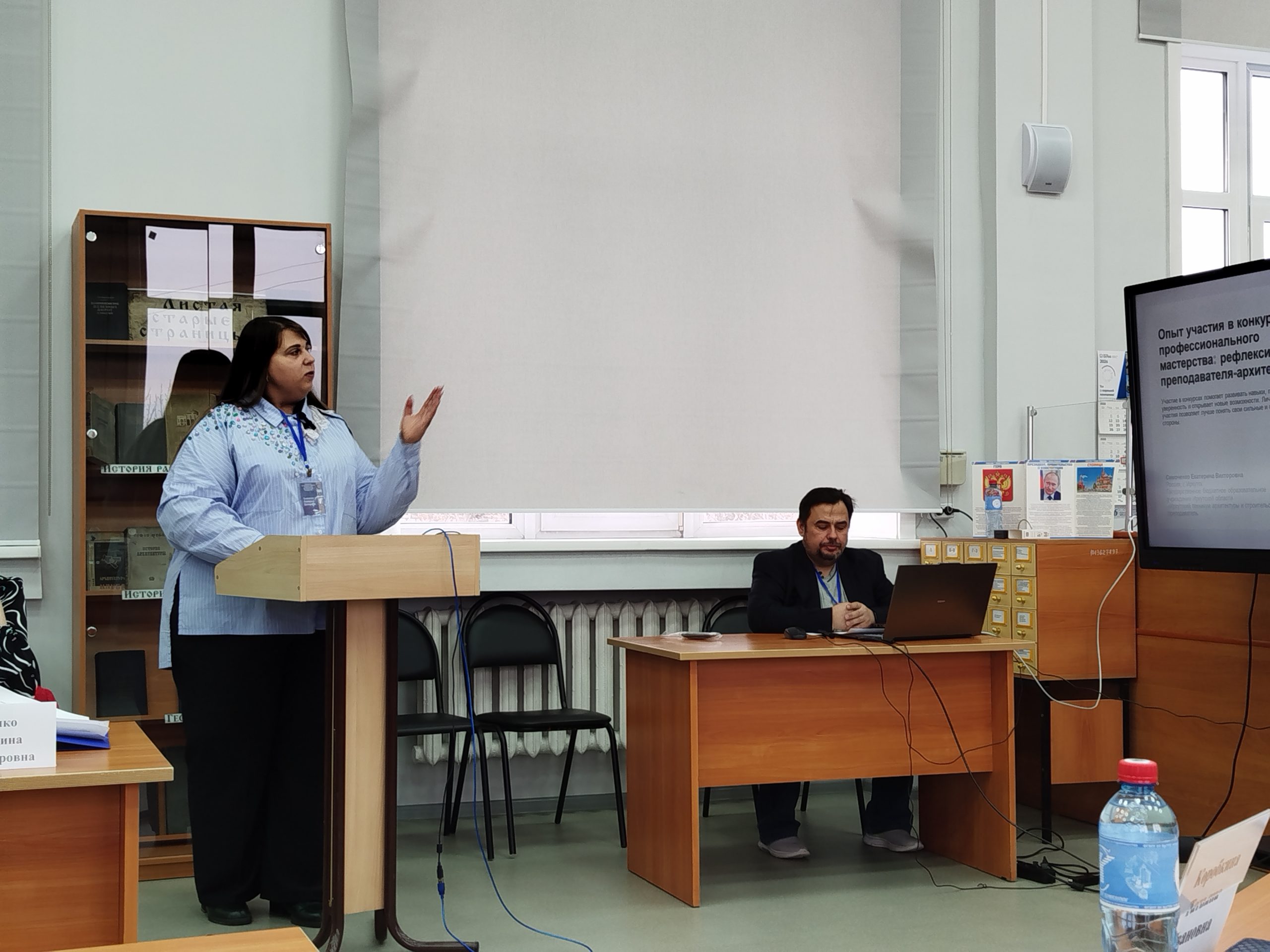 Преподаватель техникума Симоченко Екатерина Викторовна в очном формате представила доклад на тему «Опыт участия в конкурсах профессионального мастерства: рефлексия преподавателя-архитектора». В своём выступлении она поделилась практическими наработками и ключевыми выводами, полученными в ходе подготовки студентов к профессиональным соревнованиям. Особое внимание было уделено методикам развития профессиональных компетенций и стратегиям повышения мотивации обучающихся. Доклад вызвал живой интерес у аудитории и получил положительные отзывы экспертов.