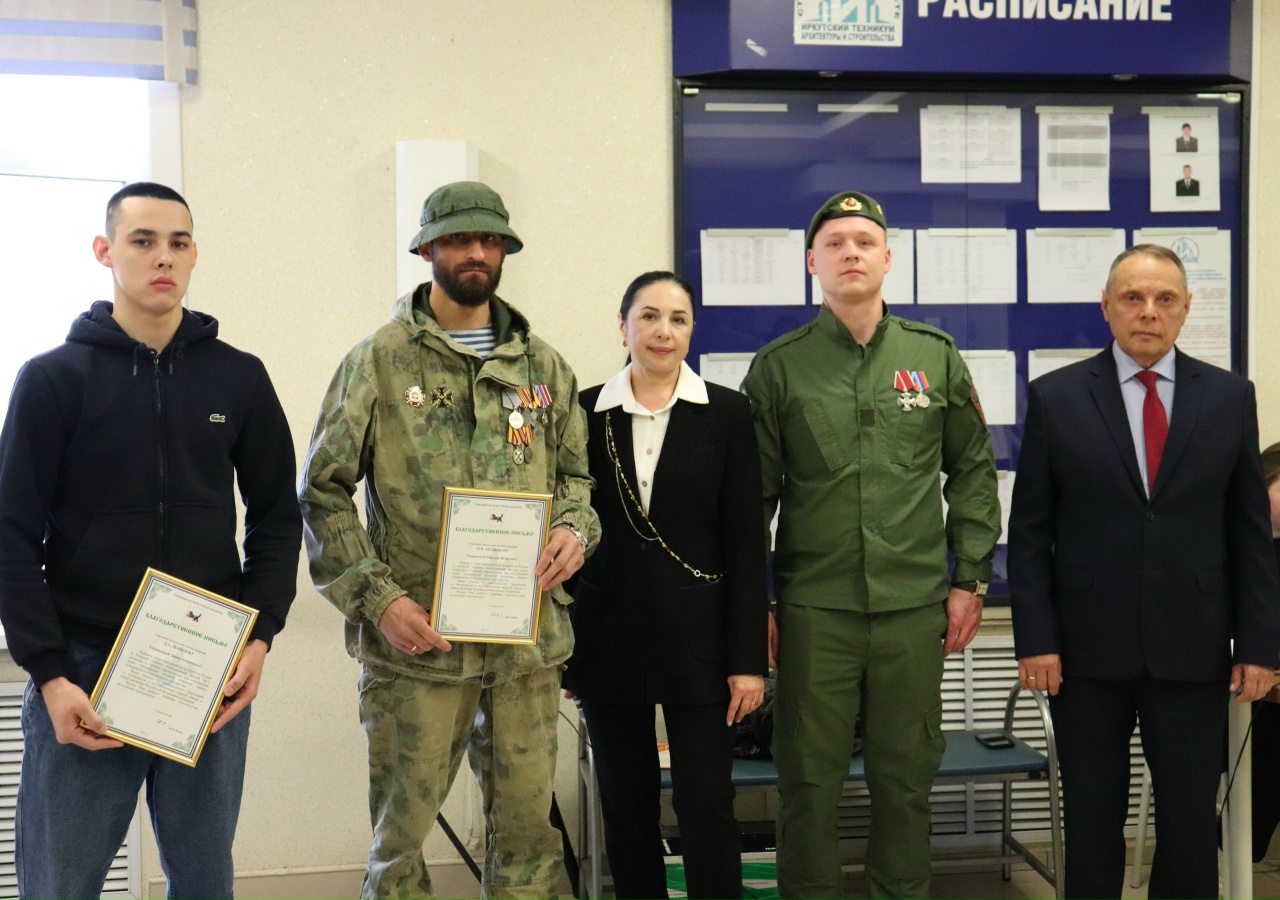 Линейка была посвящена торжественному вручению благодарностей от губернатора Иркутской области нашим студентам-выпускникам, героям-участникам Специальной военной операции Максиму и Данилу.