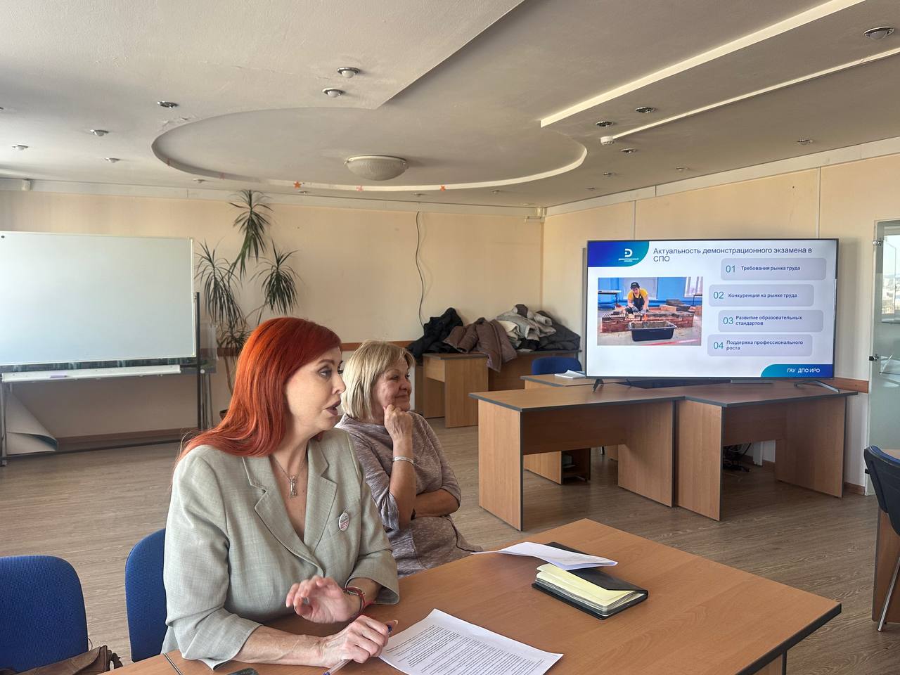 Лесниковская Жанна Юрьевна, координатор Центра развития профессиональных компетенций ГАУ ДПО ИРО выступила по теме; «Чемпионат «Профессионалы и демонстрационный экзамен СПО: