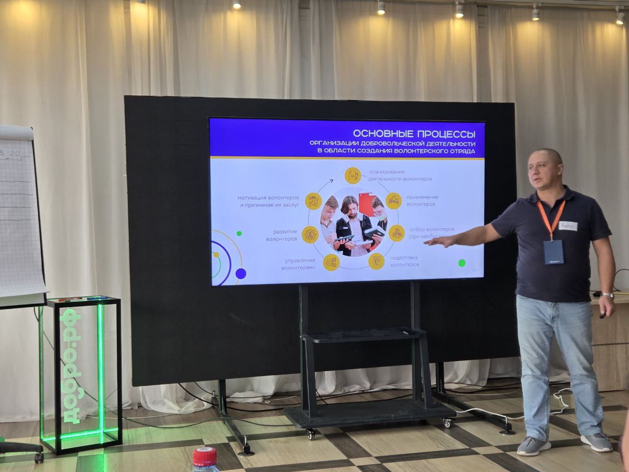 Большую часть трека вел сертифицированный тренер проекта «Школа Добро.Университета» и тренер обучающих стажировок Ассоциации «Добро.РФ», эксперт грантовых конкурсов Андрей Черкасов.