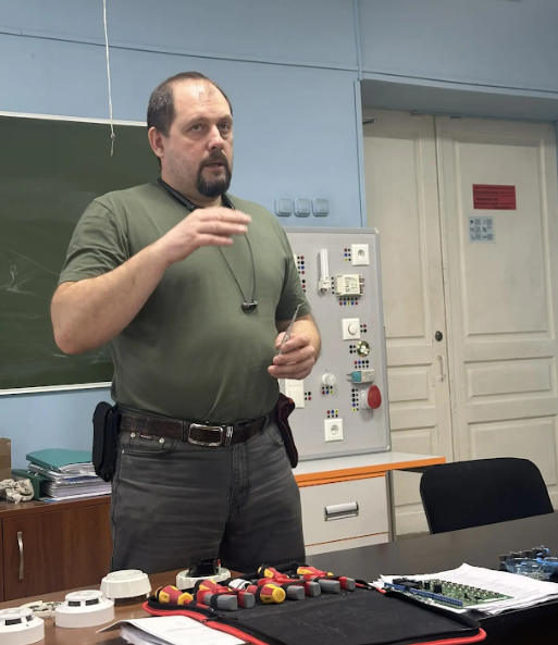 12 февраля 2026 года инженер ООО «Маяк» Сальков В.Ю. провел мастер-класс для группы ЭМ-24-226, обучающихся по профессии Электромонтажник слаботочных систем.