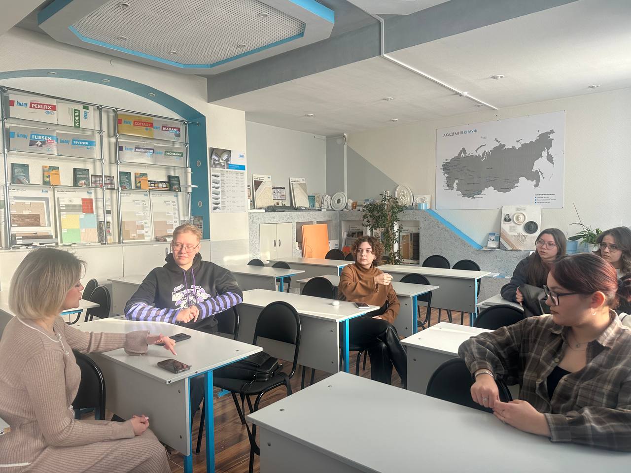 4 февраля 2026 года был организован мастер-класс Калашниковой Полиной Геннадьевной, специалистом отдела по работе с молодежью ООО «СтройПроектСервис» по теме «Собеседование с работодателем». На мастер-классе присутствовали обучающиеся групп РО-25-325, которые только знакомятся с будущей специальностью и РО-22-411, которые заканчивают обучение по специальности Реклама.