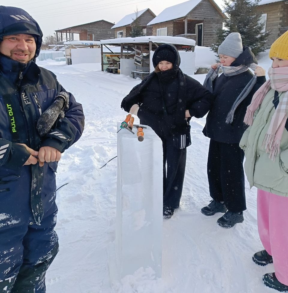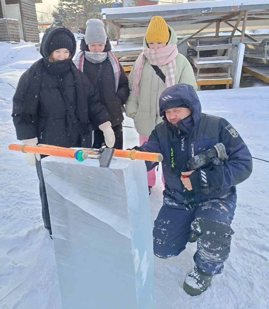 Студенты филиала ИТАС г. Шелехова вновь приняли участие в проведении мастер-класса по вырезанию фигур изо льда на пляже Боссой.