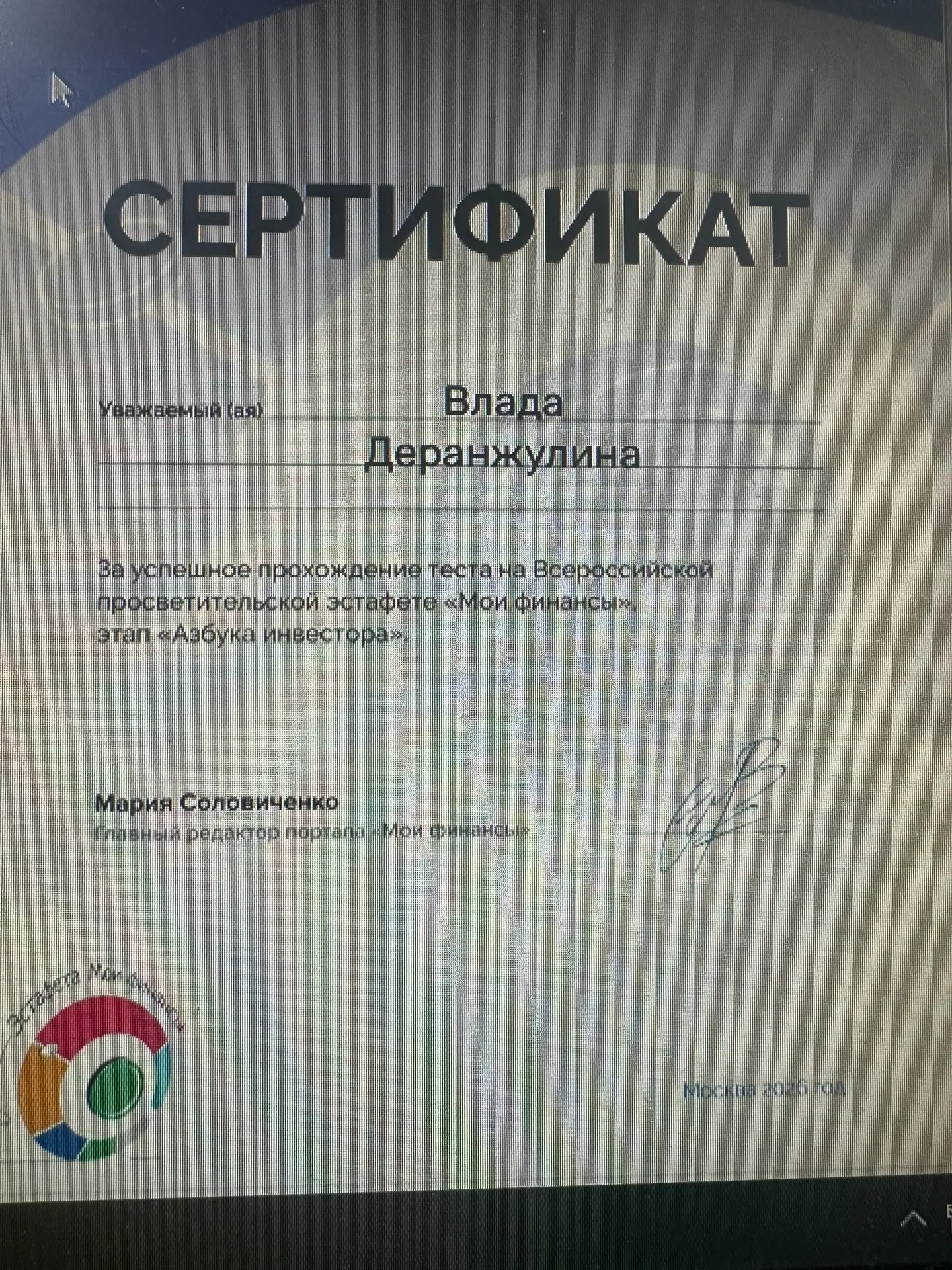 Группа делегировала полномочия  Деранжулиной Владе ответить на вопросы теста. Правильно ответив на все вопросы Влада получила сертификат.