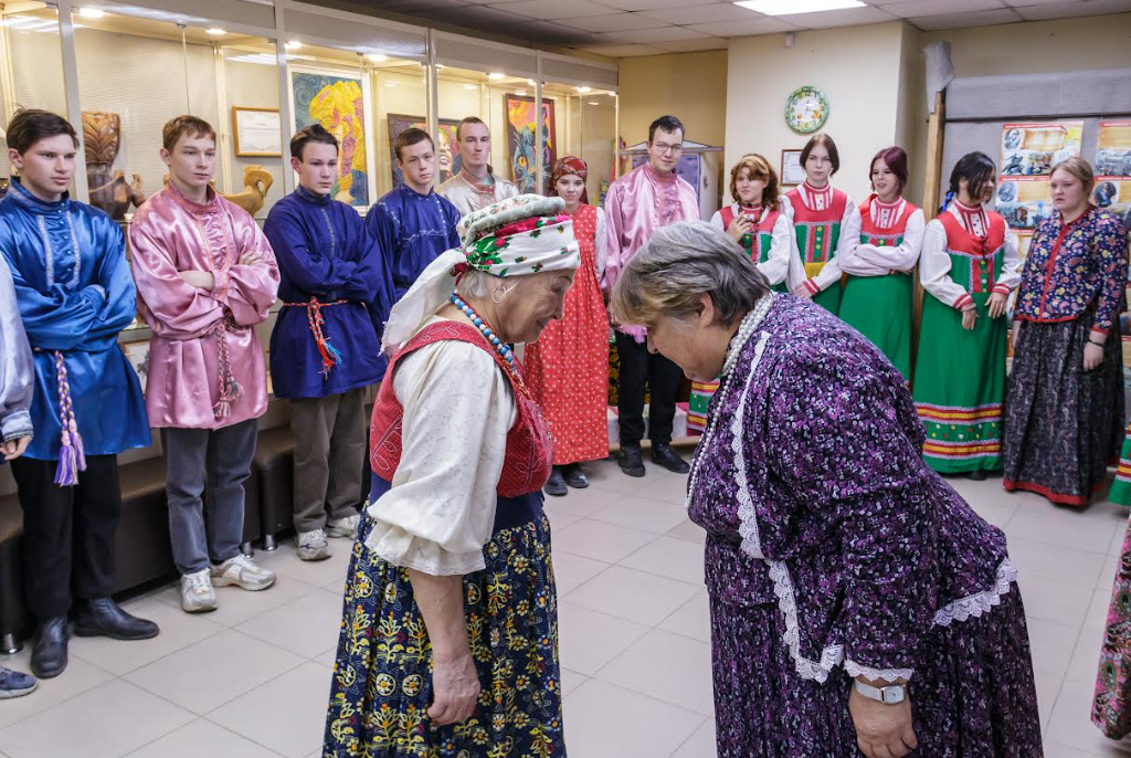 В славянском календаре Покров означал завершение полевых работ, прощание с осенью и подготовку к наступлению зимы. В этом году, накануне Покрова, снега выпало немного – «нехорошо, когда зима придёт на голую землю» (по народным приметам эта зима будет холодная, затяжная). Как и положено, участники переоделись в народные костюмы. Косоворотки парни подпоясали кручеными из шерстяных нитей «опоясками», девушки обрядились в рубахи и сарафаны. С весёлыми присказками, «Покров-привереда, кроет землю то листом, то снегом», гости включились в «посиделочную» программу, разучивали песни, фигуры хороводов и кадрилей. Для девушек провели обряд «на женихов». За шутливыми присказками «Покров, Батюшка, покрой земельку снежком, а нас девушек женишком», скрывается исконный смысл народного праздника, основанного на традиционных семейных ценностях. Поэтому желающие (девчата и конечно, парни) изготовили особый обрядовый символ семейного очага -куклу – мотанку. Помогала им Л.И. Бардовская -мастер по народной кукле и ткачеству Дома ремёсел.