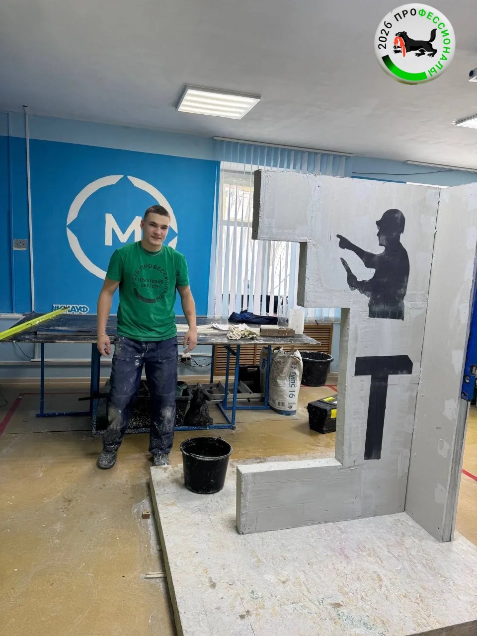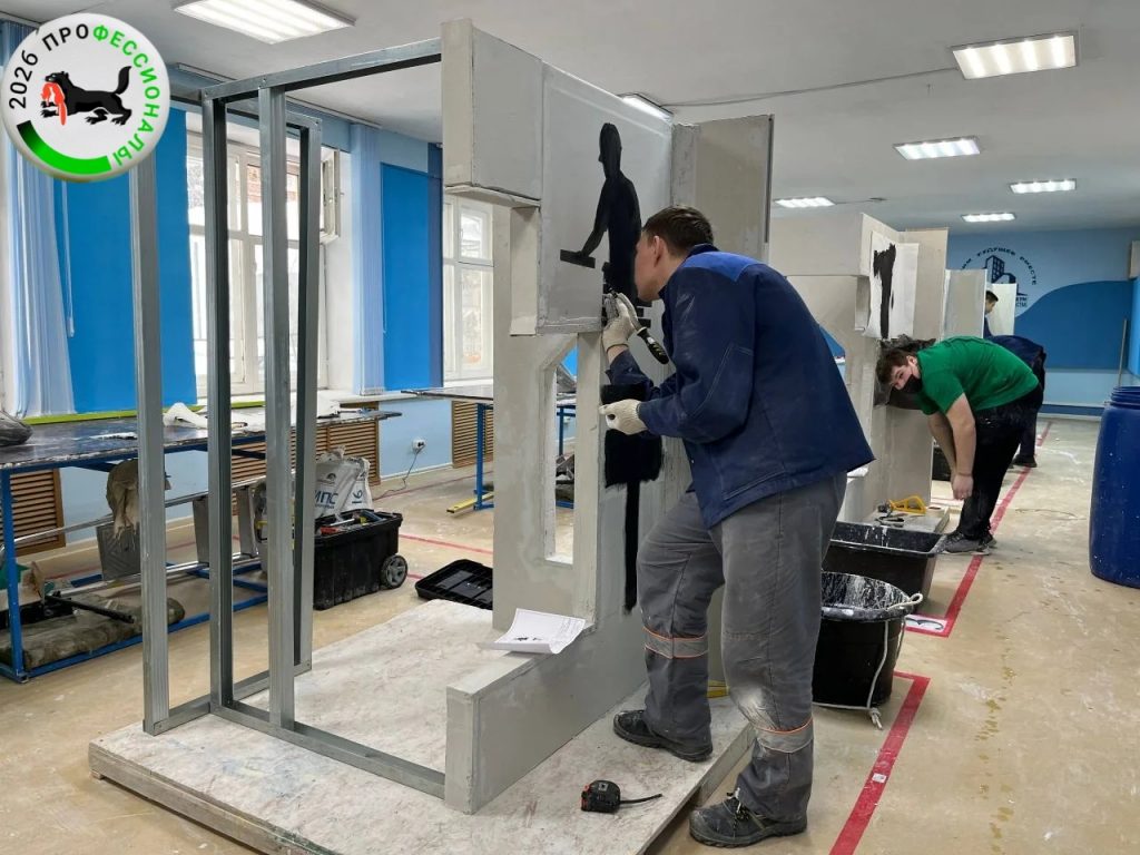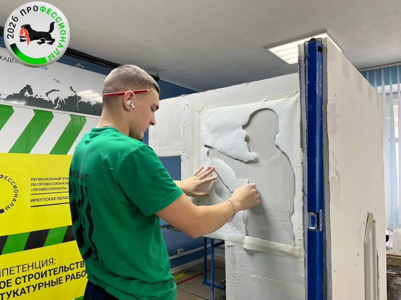 Сегодня в рамках компетенции «Сухое строительство и штукатурные работы» регионального этапа Чемпионата по профессиональному мастерству «Профессионалы» Иркутской области, участники должны изготовить и зафиксировать фигурные элементы и нанести декоративную штукатурку.