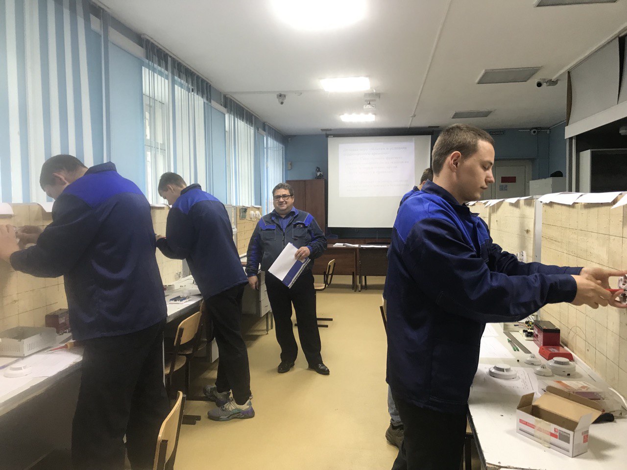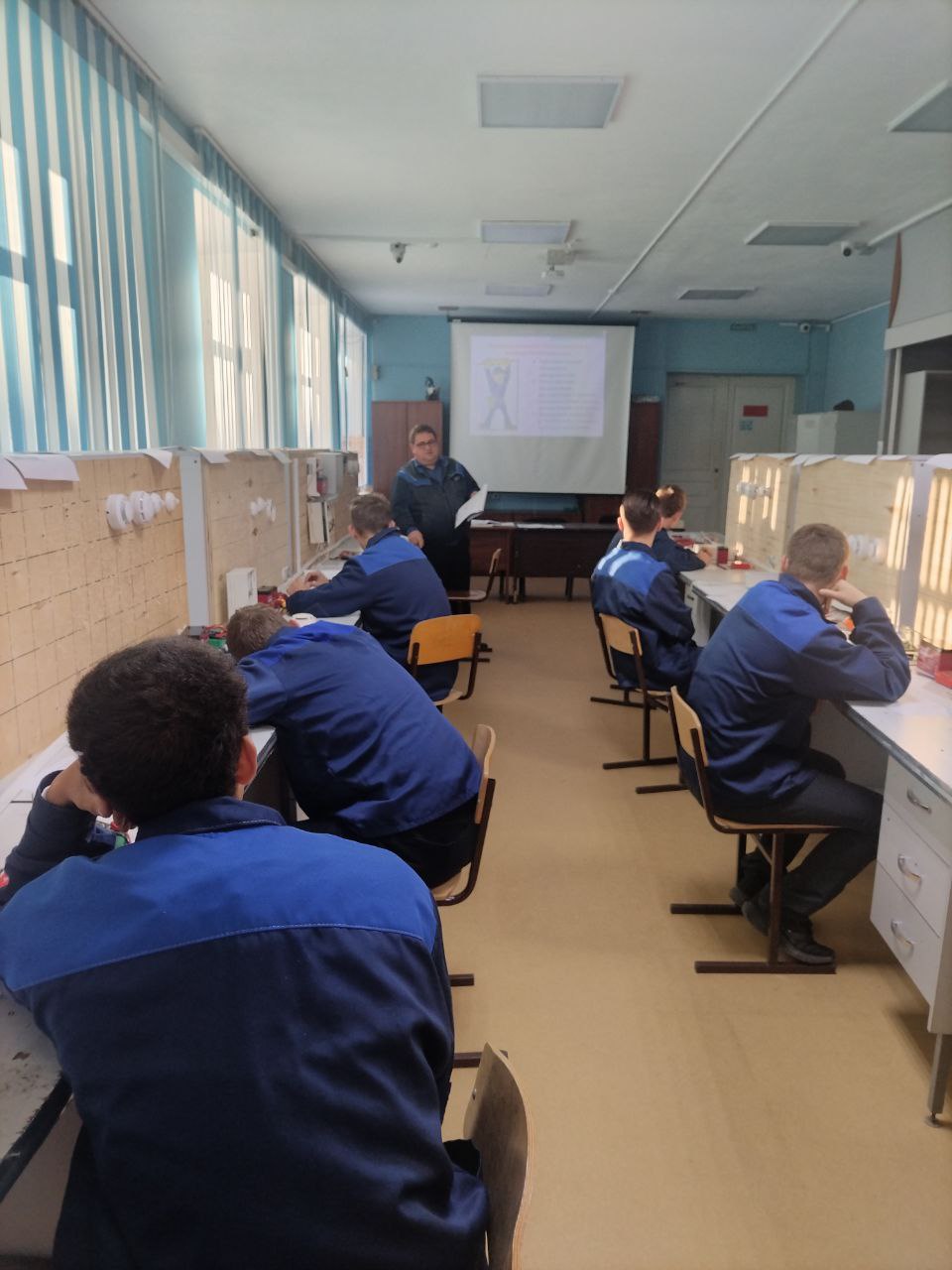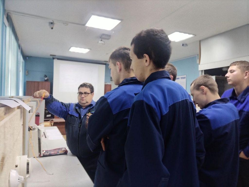 В начале занятия Леонид Юрьевич продемонстрировал ребятам трудовые приёмы по изучаемой теме. Перед работой на стендах студенты под подпись были проинструктированы по технике безопасности. В процессе текущего инструктажа они выполняли монтаж блоков питания. В завершении учебной практики обучающиеся заполняли бланки актов по устранению неисправностей.